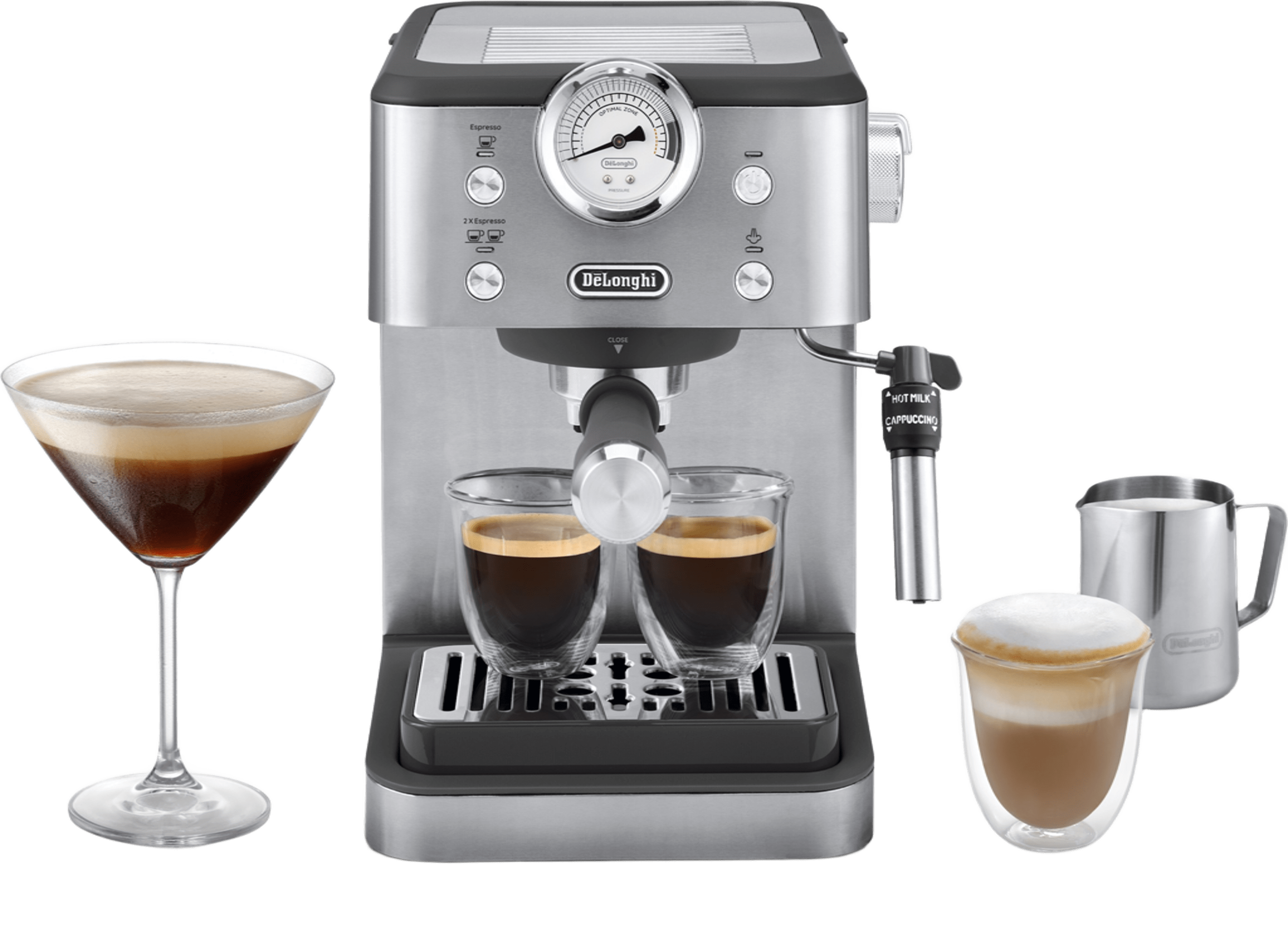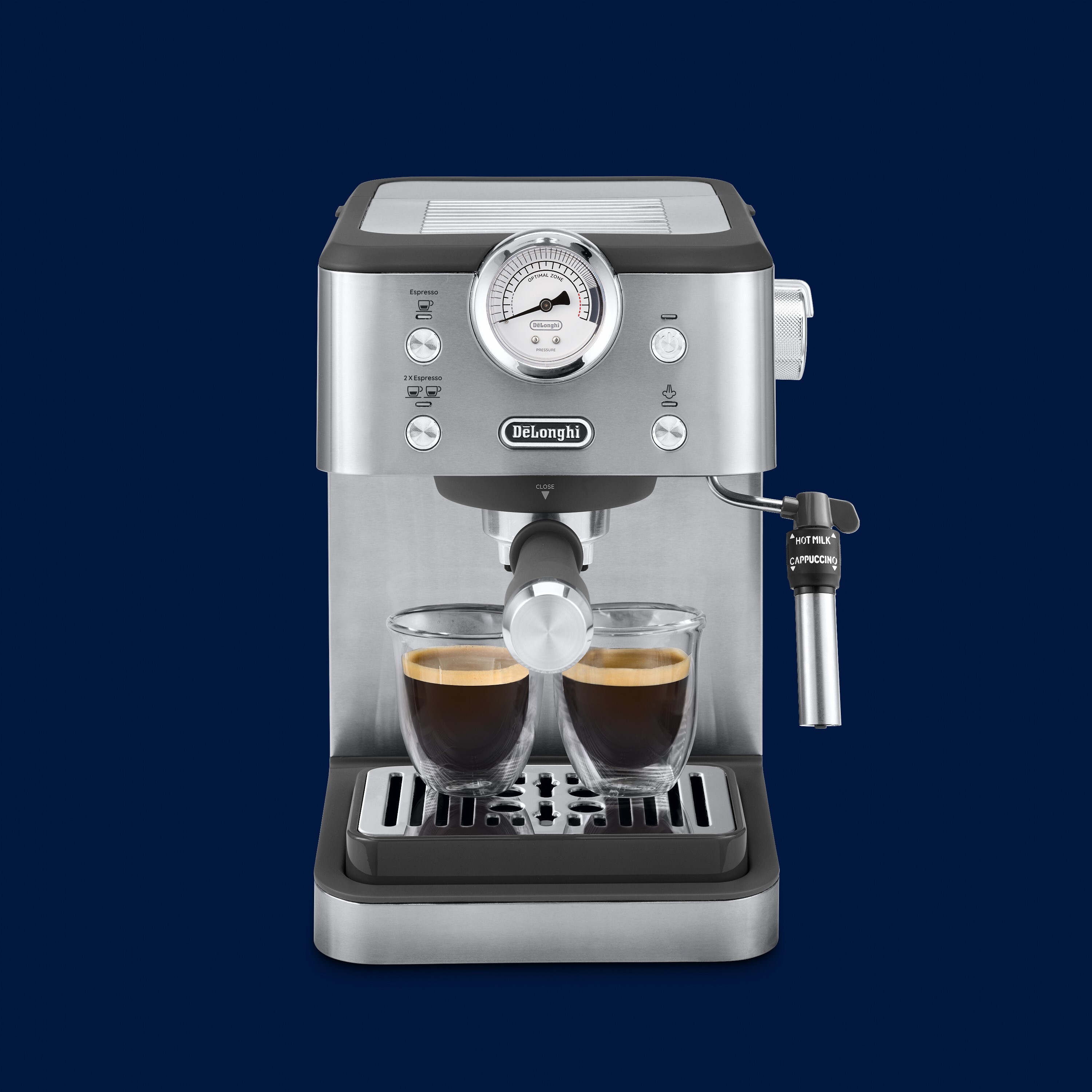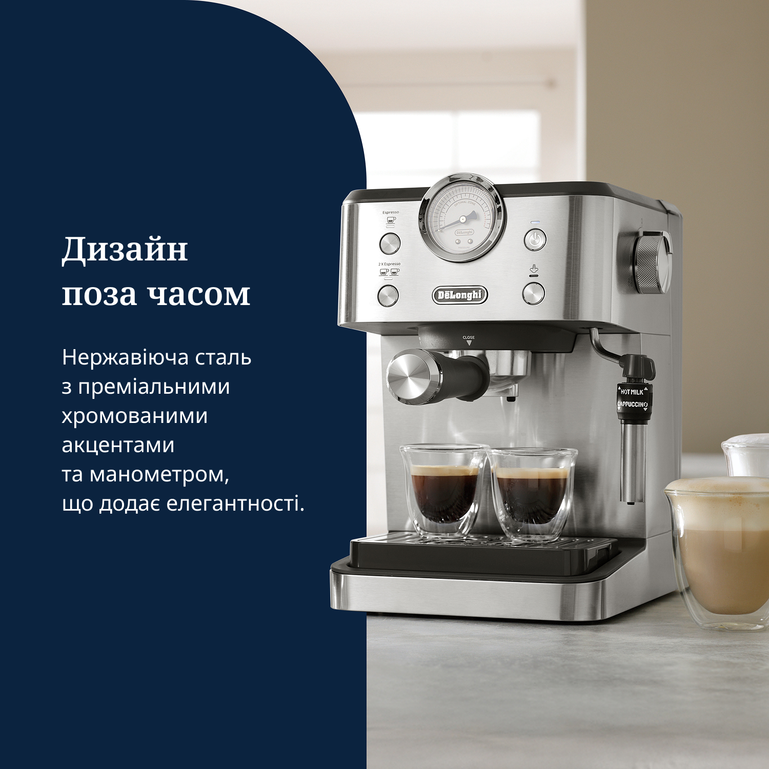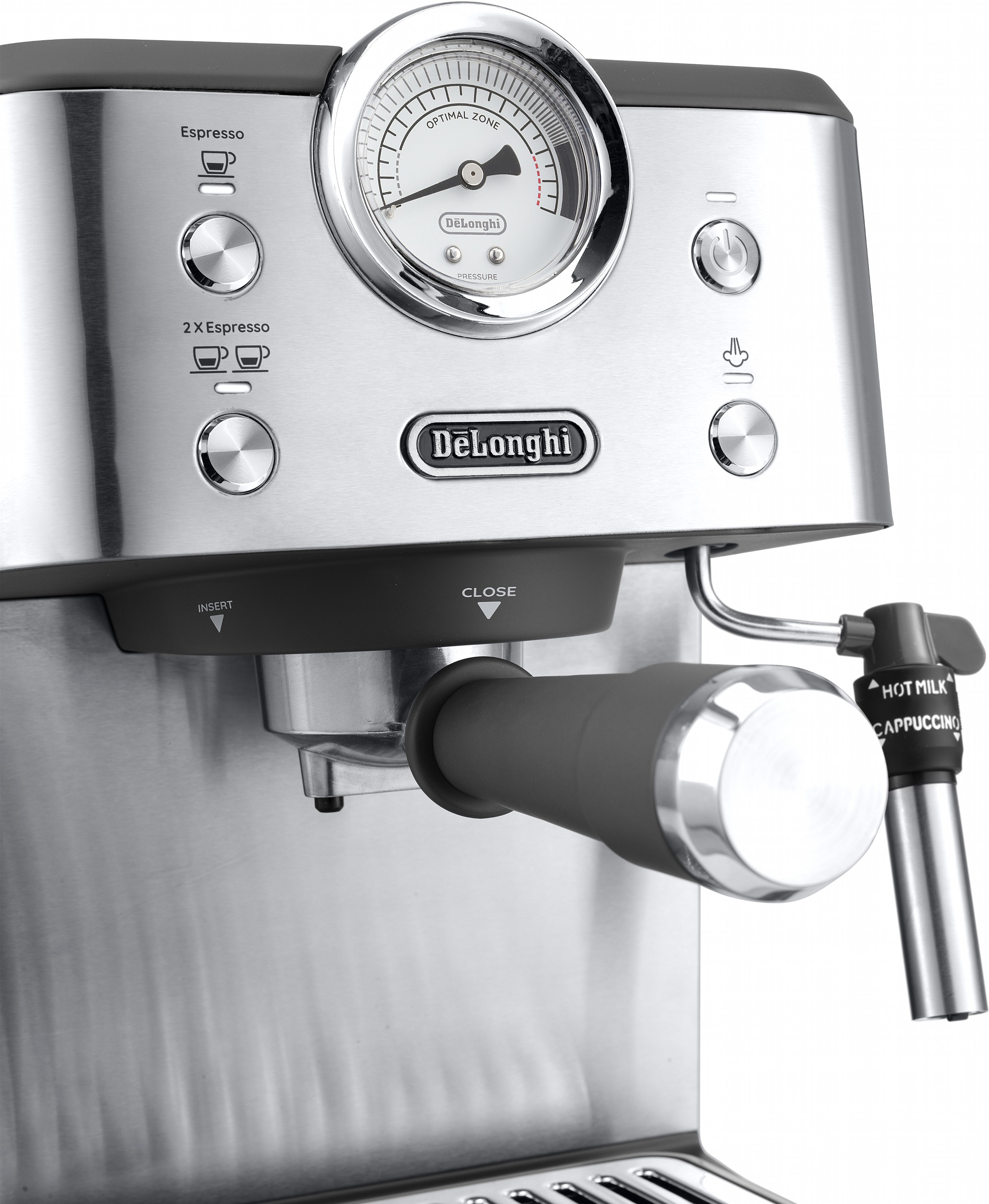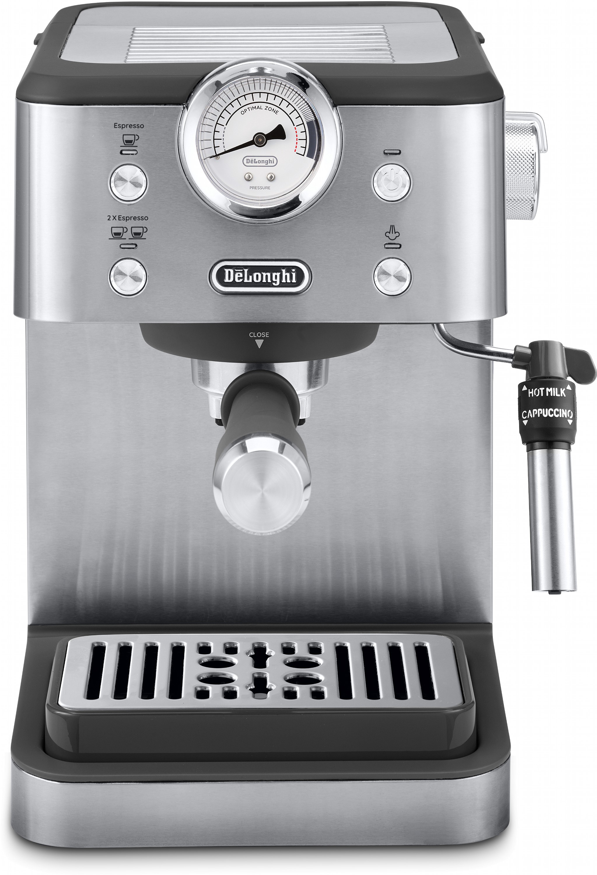 Італійський дизайн поєднується з винятковим еспресо ріжкової кавоварки Delonghi серії Linea Classic. Приносячи вам простоту і якість для всіх ваших улюблених кавових напоїв вдома.