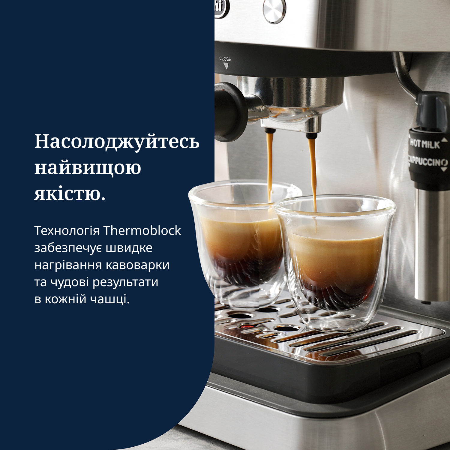 - Ідеальна температура: максимально швидке нагрівання для досягнення ідеальної температури води, завдяки технології Thermoblock, що забезпечує швидкий, точний і стабільний контроль температури.