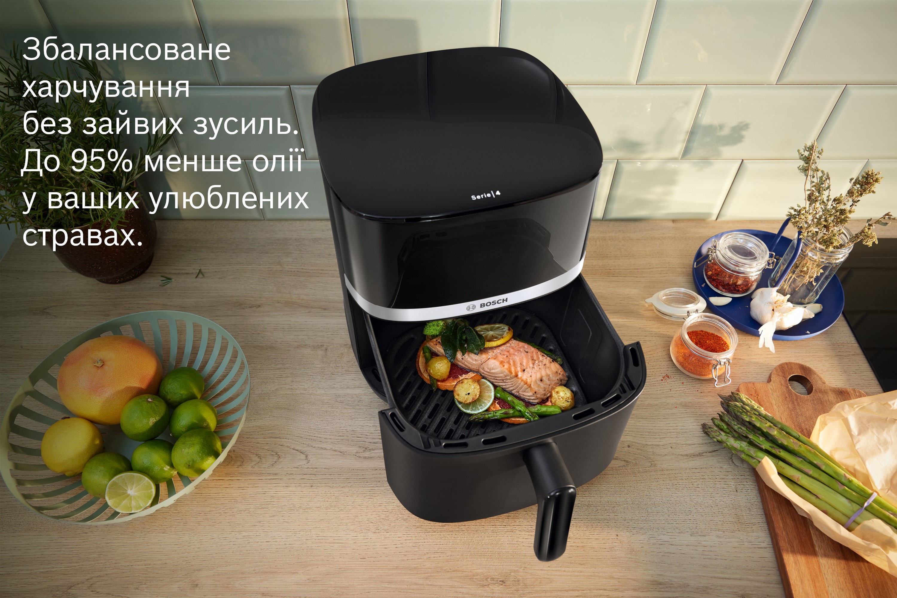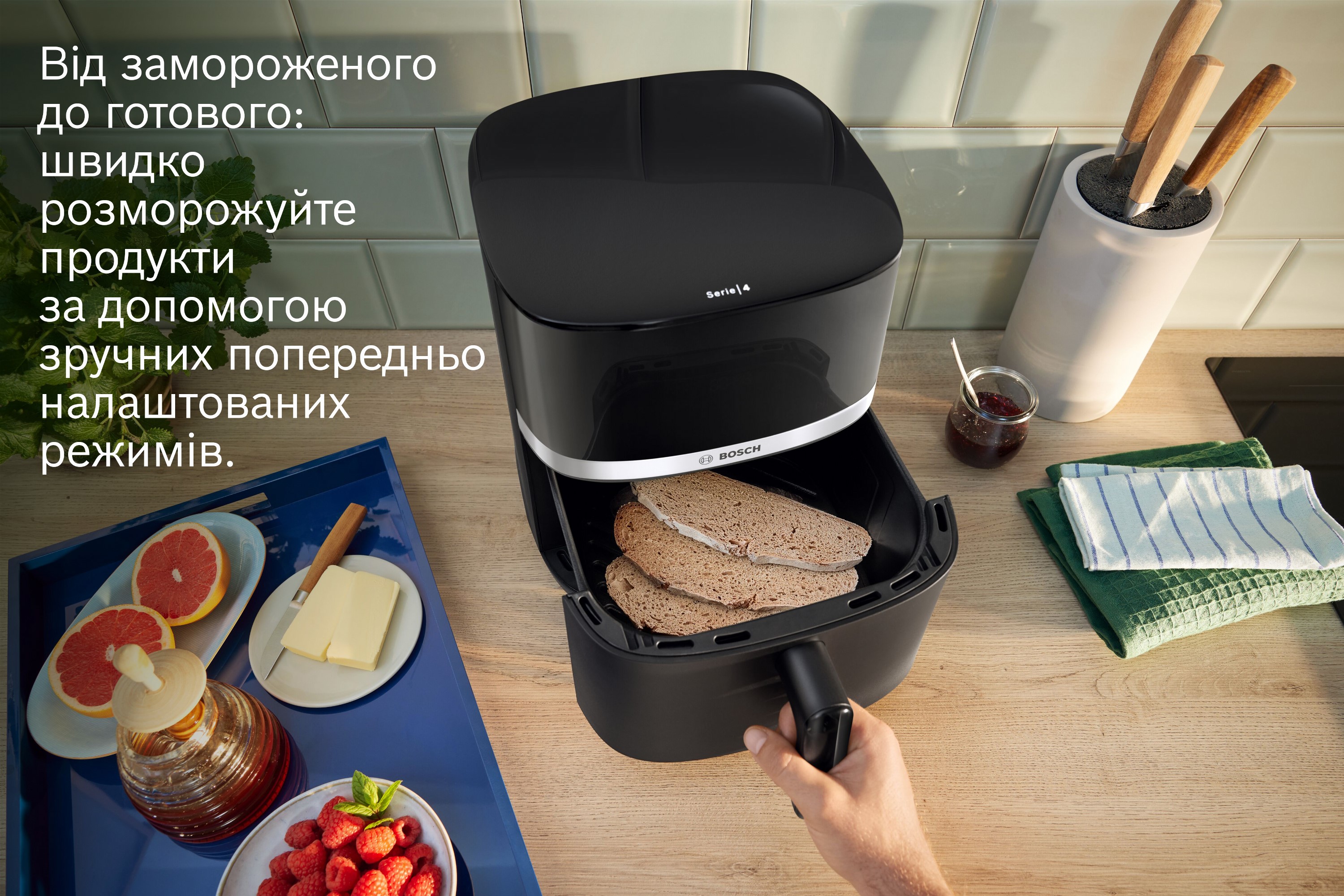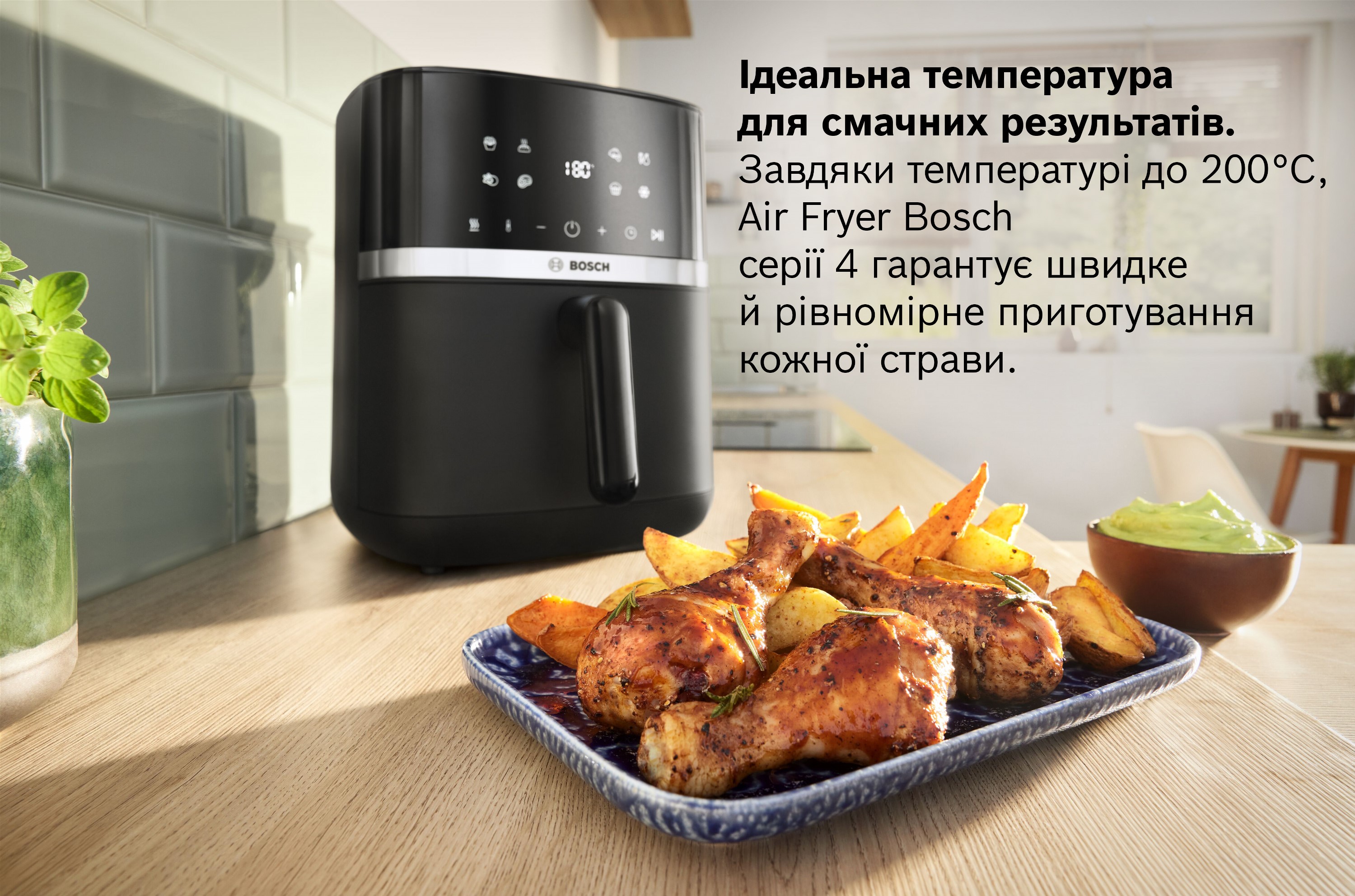 Мультипіч Bosch Serie 6 MAF462B0 – це сучасний кухонний прилад, що поєднує високу продуктивність, зручність та стильний дизайн. Завдяки технології швидкої циркуляції гарячого повітря вона забезпечує рівномірне приготування страв з усіх боків, створюючи апетитну золотисту скоринку зовні та зберігаючи соковитість усередині. Діапазон температур від 40°C до 200°C у поєднанні з подвійними нагрівачами дозволяє швидко готувати різноманітні страви, використовуючи мінімальну кількість олії або взагалі без неї. Велика чаша об’ємом 6.1 л підходить для приготування до чотирьох порцій за один раз, а 7 автоматичних програм (для картоплі фрі, м’яса, птиці, риби, овочів, кексів та булочок) роблять процес приготування максимально простим і зручним.