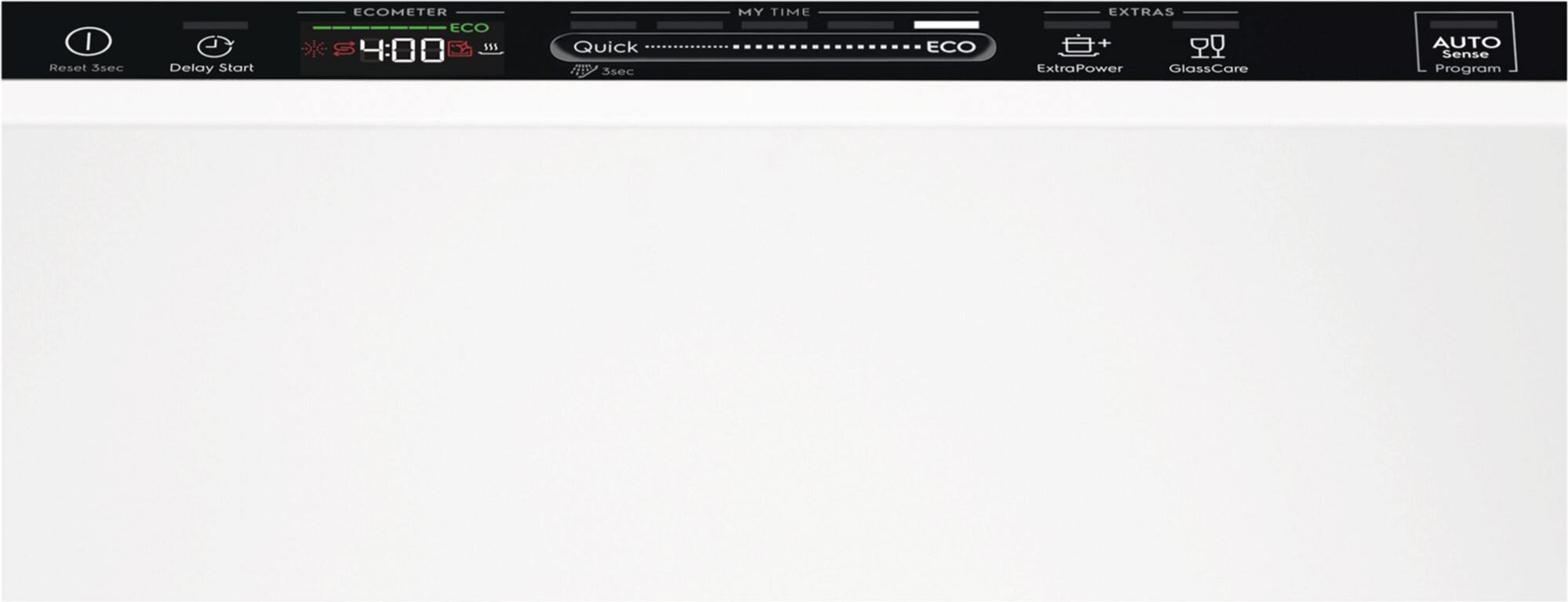 Раціональне миття посуду - це просто. Скористайтеся сенсорним повзунком QuickSelect, щоб вибрати бажаний час циклу, а Ecometer відобразить програму за допомогою інтуїтивно зрозумілих зелених смуг, яка найбільше підходить для економії енергії та води.