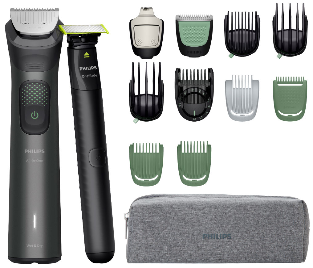 Philips MG9531/15 — багатофункціональний All‑in‑One тример серії 9000 із 15 насадками, який дозволяє доглядати за бородою, волоссям та тілом у різних стилях. Його високоточний керамічний гребінь має 11 налаштувань довжини від 1 до 3 мм із кроком 0,2 мм, а мульти-гребінь пропонує 27 варіантів довжини — від 0,2 до 20 мм — для тонкої настройки стрижки. Оснащений технологією OneBlade із швидким рухом леза (6000 рухів за хвилину), плавним ковзанням та закругленими кінцями, цей тример забезпечує чітке формування контурів і комфорт для шкіри.