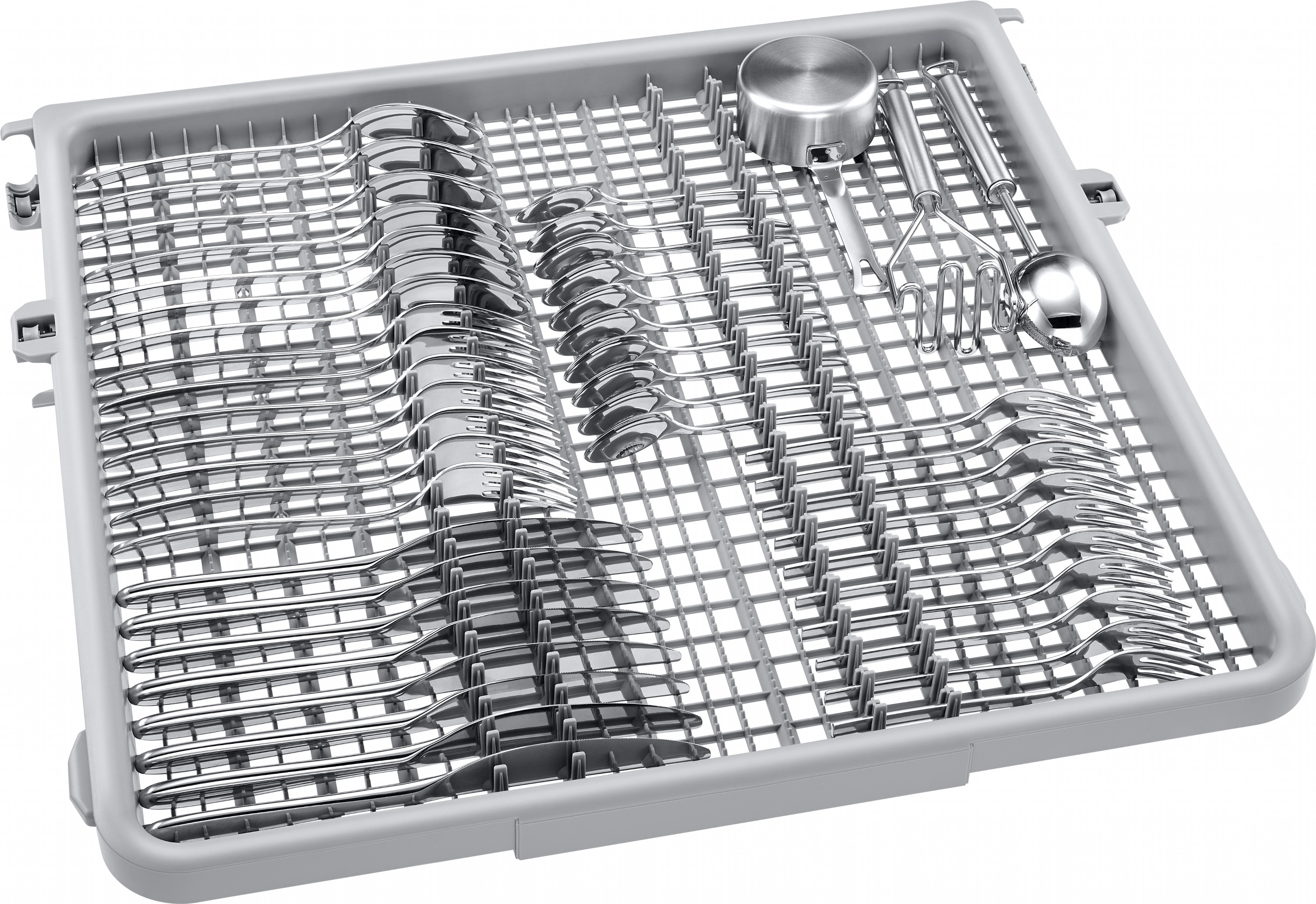 Серед зручних функцій — індикація променем на підлозі, автоматичне відкриття дверцят після завершення роботи, три кошики для більш організованого розташування посуду, режим половинного завантаження та таймер відстрочки старту. Також підтримується керування телефоном, що додає ще більшої свободи у використанні.