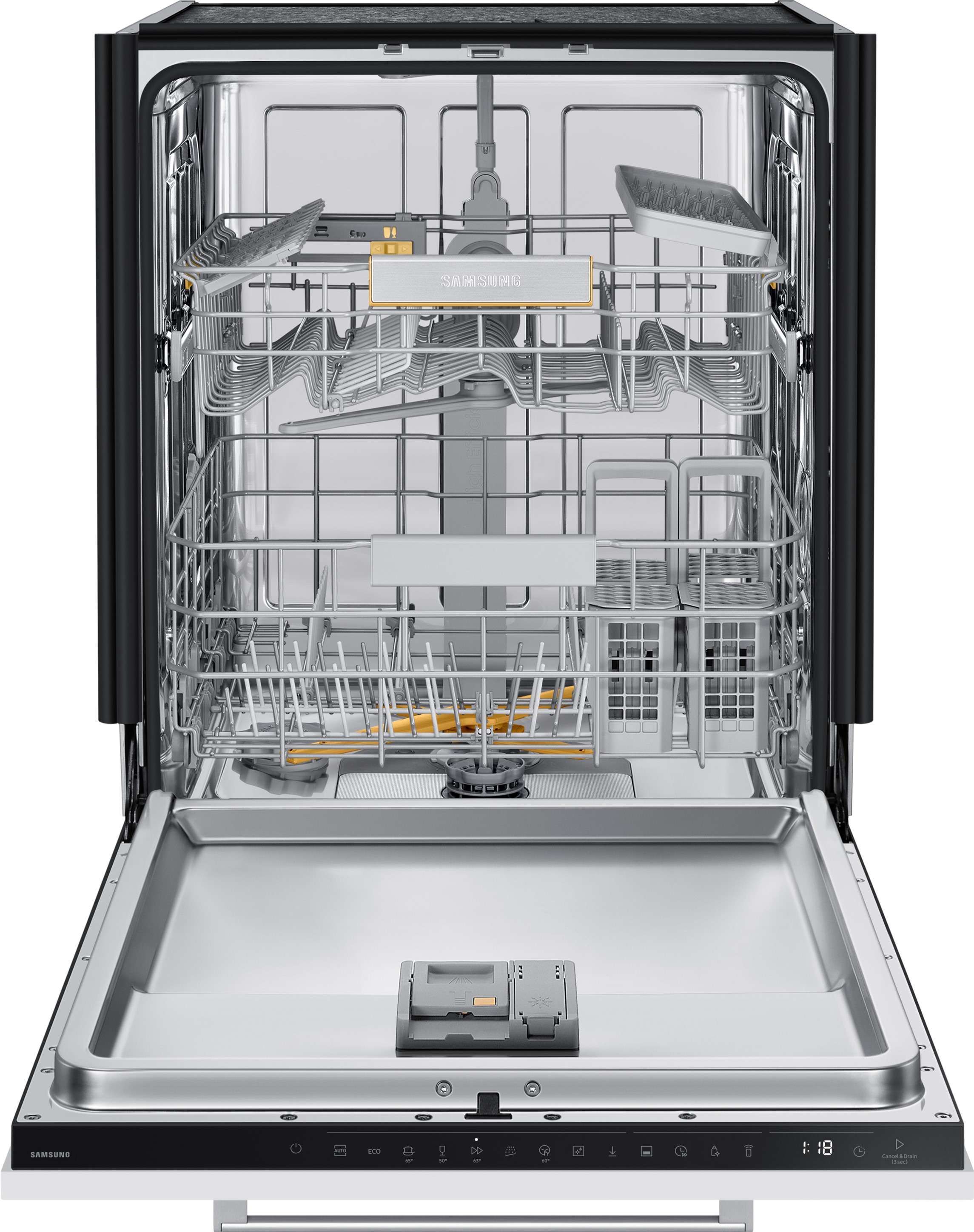 Вбудована посудомийна машина Samsung DW60DG760B00U1 — це сучасне рішення для кухні, яке поєднує високу ефективність, місткість та інноваційні функції. Повногабаритна модель на 13 комплектів працює з рівнем шуму всього 44 дБ, що забезпечує тиху роботу навіть у нічний час.