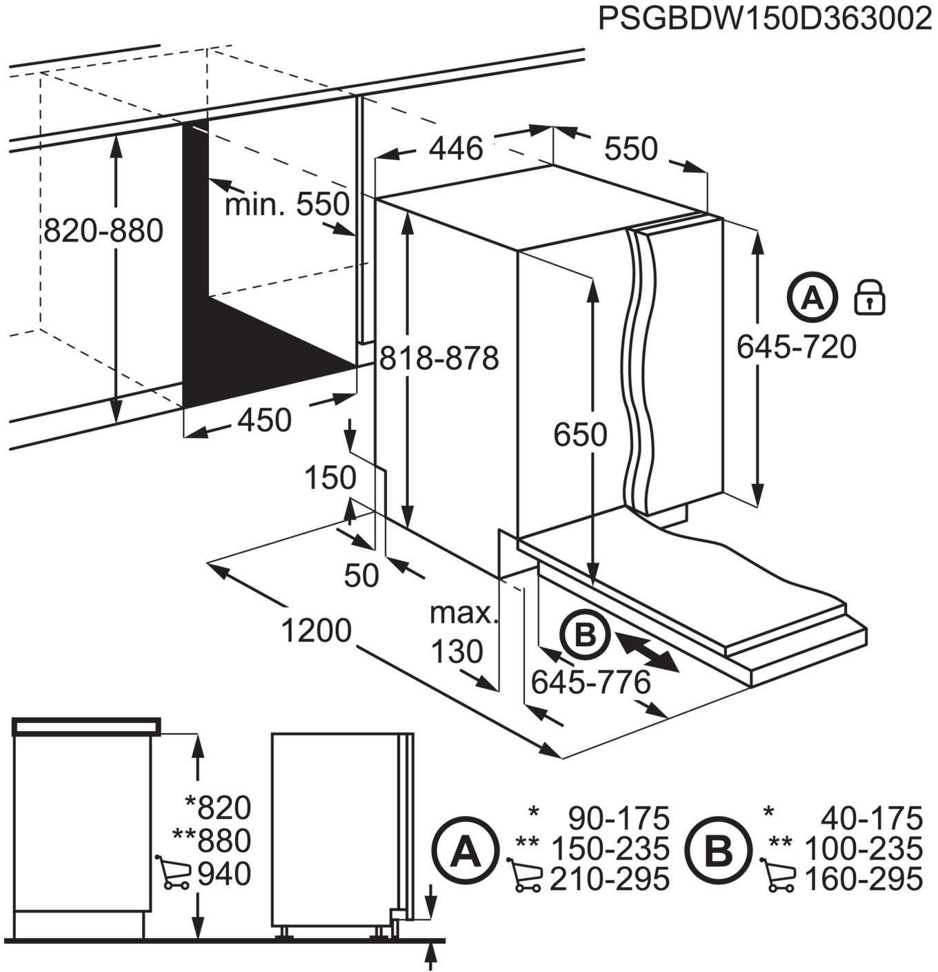 Внутрішнє оснащення передбачає верхній кошик із регулюванням висоти навіть при повному завантаженні, складані полиці Soft Spikes для надійної фіксації келихів, систему FlexiLift, нижній кошик зі складними тримачами та розпилювач FlexiSpray Satellite. Для зручності передбачене внутрішнє підсвічування. Додаткові функції — автоматичне відкриття дверцят після завершення циклу, таймер відстрочки пуску, підйомний кошик та система Beam on Floor з двоколірною індикацією.