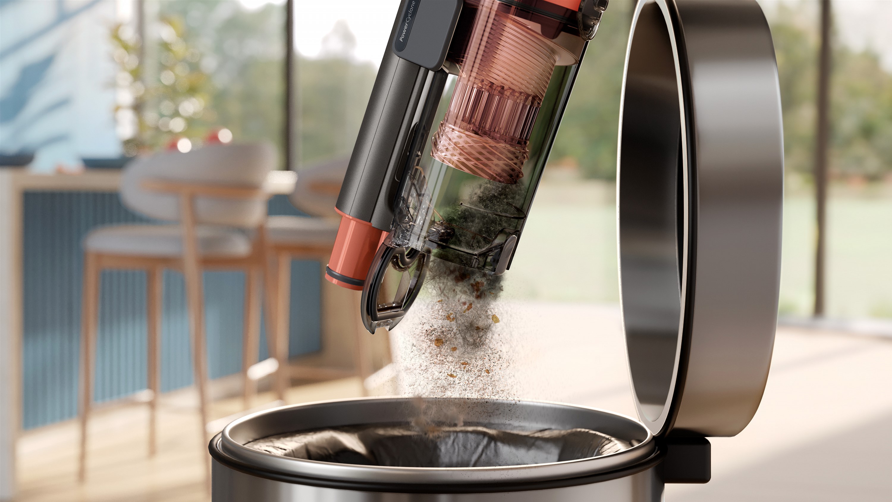 Не потрібно знімати контейнер для пилу, щоб його спорожнити: просто натисніть одну кнопку, щоб видалити пил і бруд. Тепер контейнер став ще більшим, щоб ви могли прибирати без зупинок.
