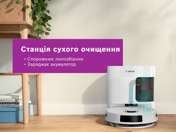 Керування відбувається як через смартфон за допомогою додатку Bosch Home Connect, так і безпосередньо з корпусу. Інтерфейс простий та зрозумілий, а повідомлення й голосові сповіщення допомагають відстежувати хід прибирання в реальному часі.