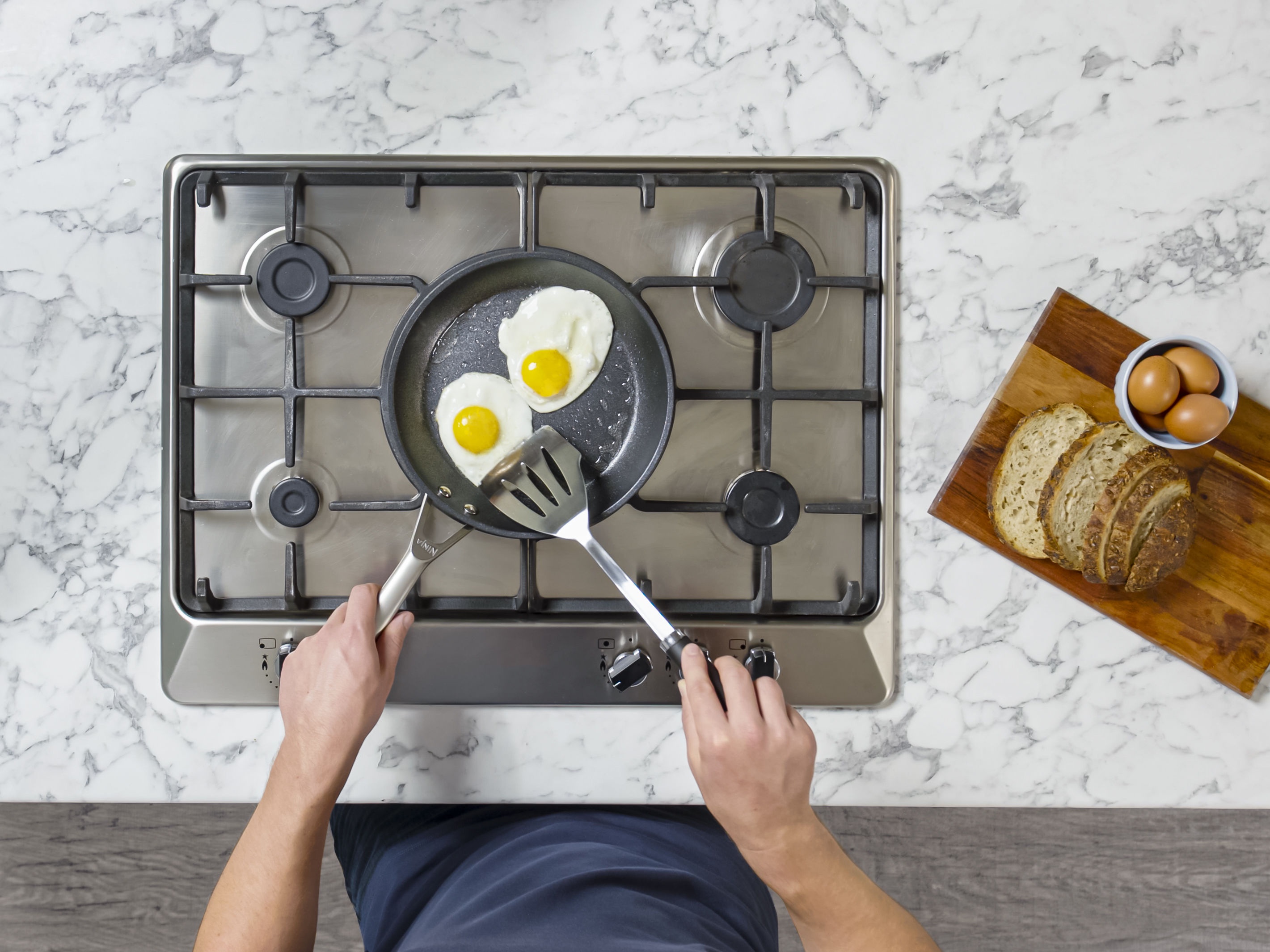 Порада від Ninja: Щоб досягти найкращих антипригарних результатів, завжди достатньо розігрівайте сковороду перед додаванням інгредієнтів. Професійним алюмінієвим моделям може знадобитися трохи більше часу для нагріву, ніж ви звикли, але це гарантує бездоганний результат.