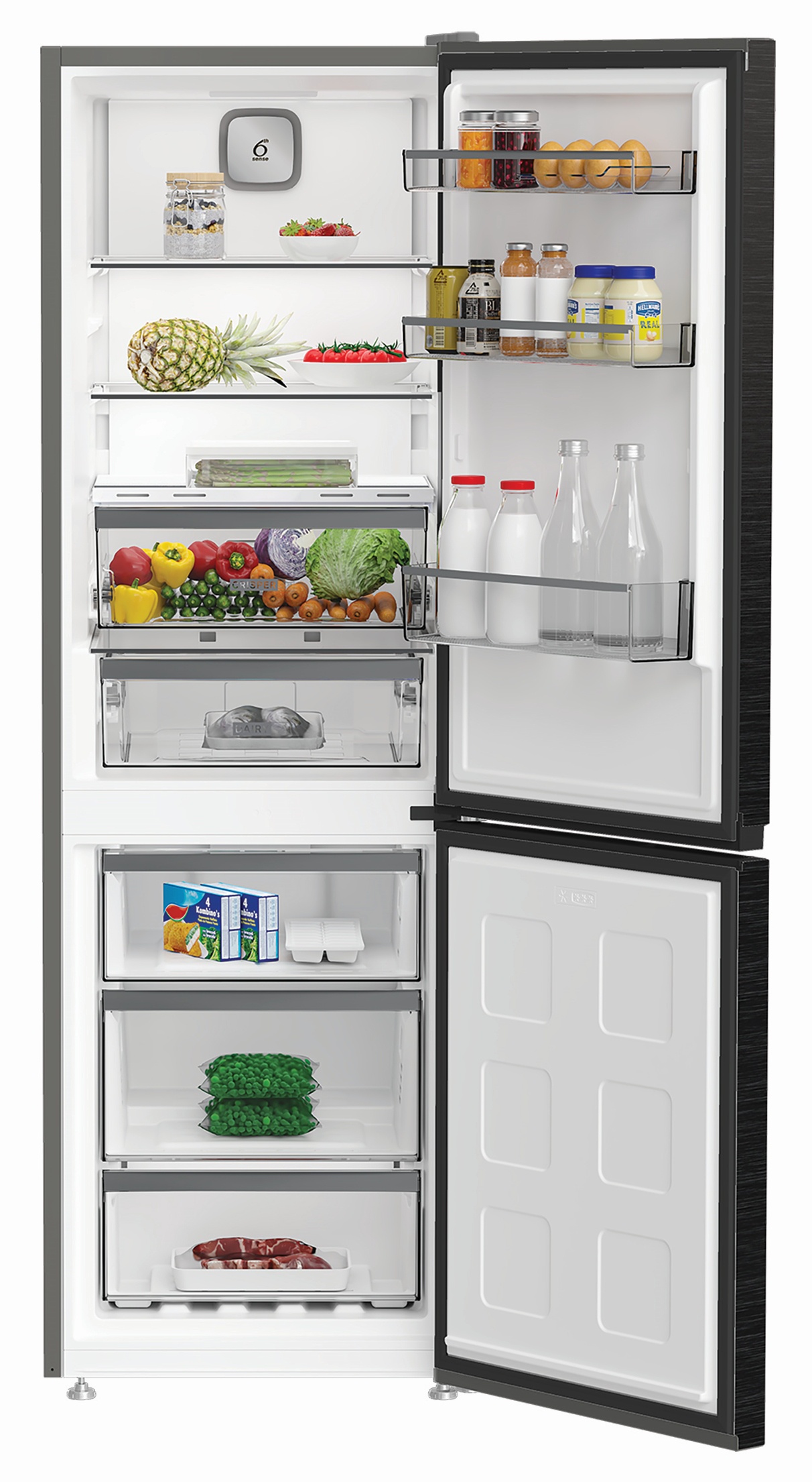 Система Dual No Frost гарантує рівномірне охолодження без утворення льоду як у холодильній, так і в морозильній камері, запобігаючи пересушуванню продуктів і зберігаючи їхню природну свіжість. Роздільна циркуляція повітря підтримує оптимальну температуру та вологість у кожному відділенні.