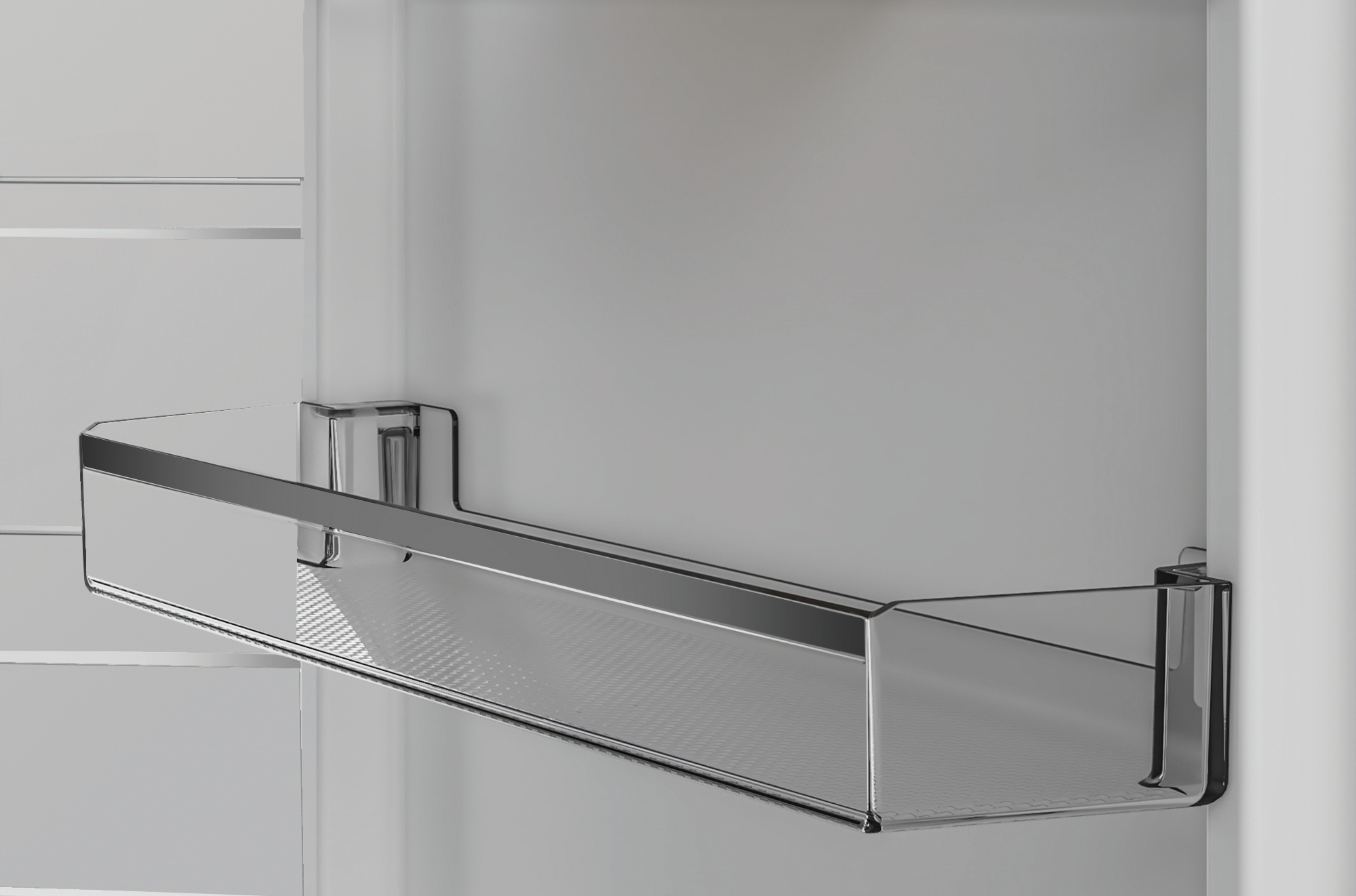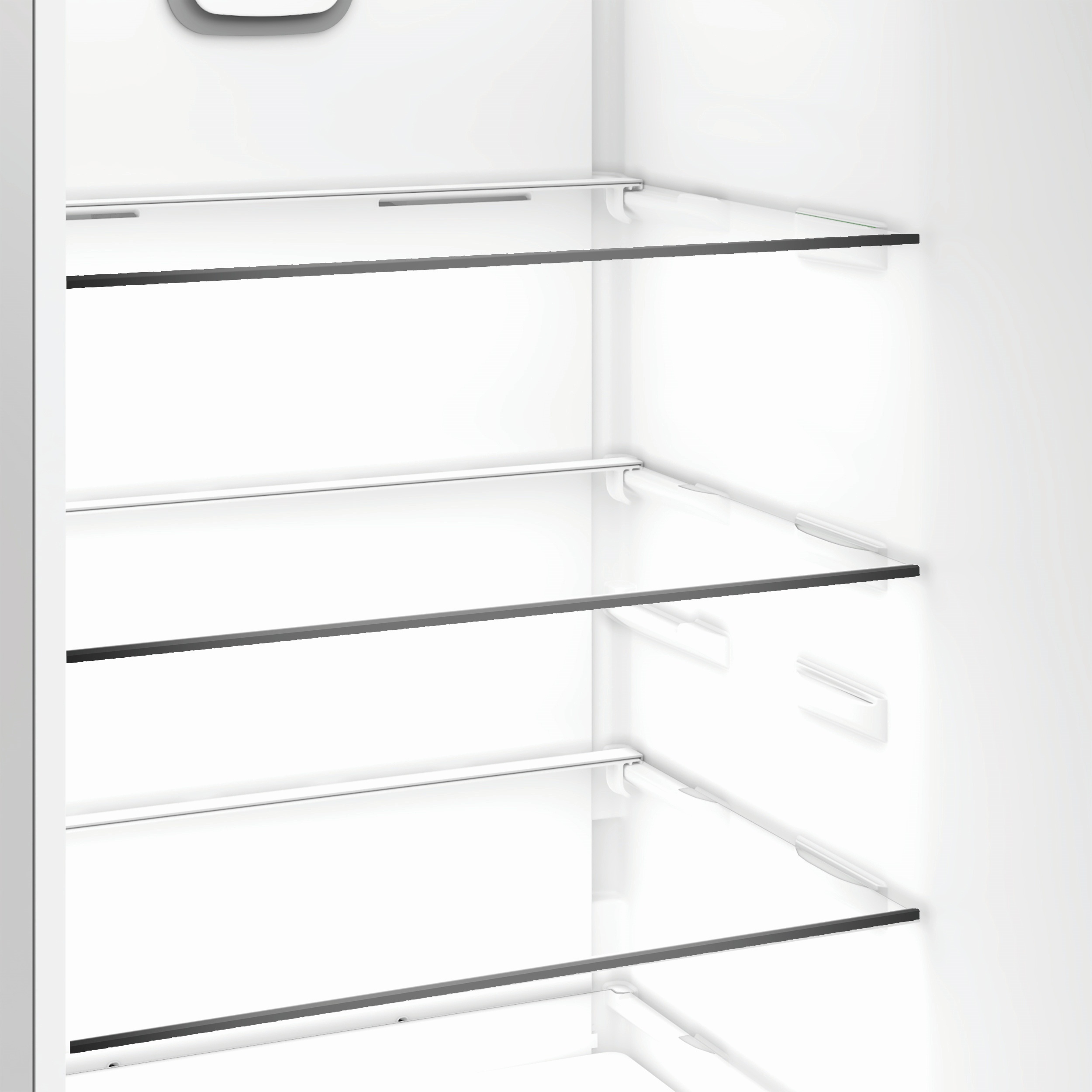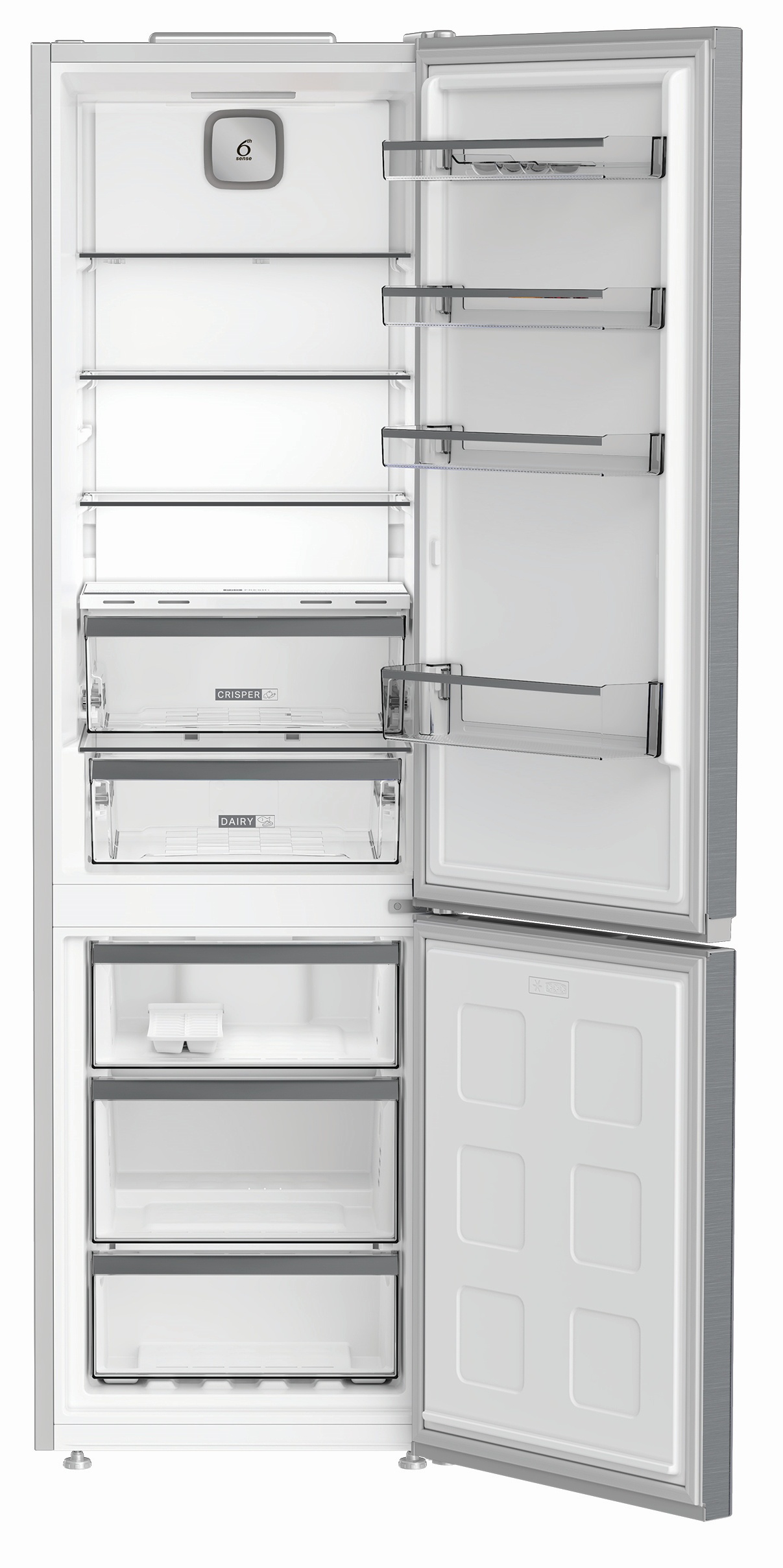 Холодильне відділення оснащене трьома скляними полицями, чотирма дверними кошиками та контейнером для овочів. Морозильна камера поділена на три секції, має потужність заморожування 6 кг на добу та автономно зберігає холод до 11 годин при відключенні електроенергії.