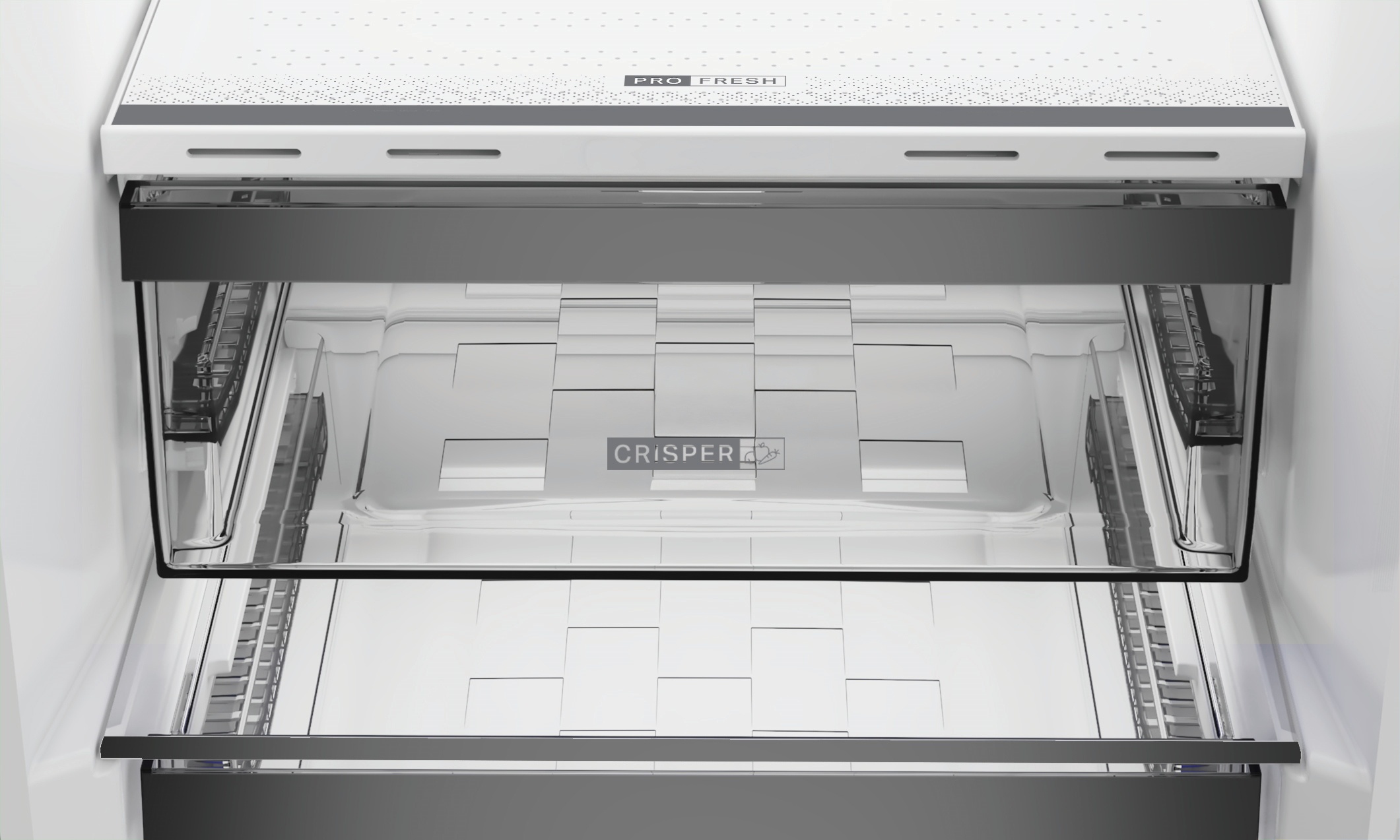 Загальний об’єм холодильника становить 355 л, з яких 249 л припадає на холодильне відділення, а 106 л — на морозильну камеру. Обидва відділення працюють на системі Dual No Frost, яка запобігає утворенню інею, підтримує оптимальний рівень вологості та зберігає свіжість продуктів без необхідності ручного розморожування.