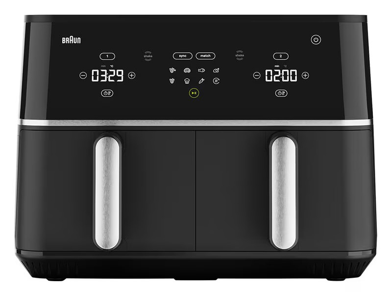 Мультипіч Braun TwinCook 5 TD 5030 IBK - це сучасний кухонний прилад, що поєднує в собі функціональність аерофритюрниці та мультипечі, забезпечуючи швидке і здорове приготування страв. Вона оснащена двома незалежними чашами об'ємом по 5 літрів кожна з антипригарним керамічним покриттям, що дає змогу готувати відразу дві різні страви або подвоїти порцію за допомогою режимів Sync і Match. Модель живиться від потужного нагрівального елемента потужністю 2400 Вт, що гарантує рівномірне нагрівання в діапазоні температур від 80 до 200 °C.