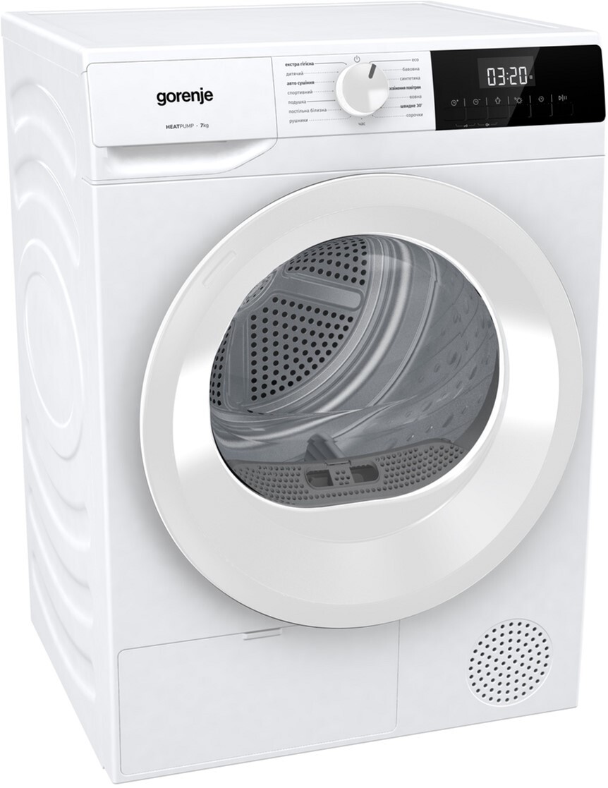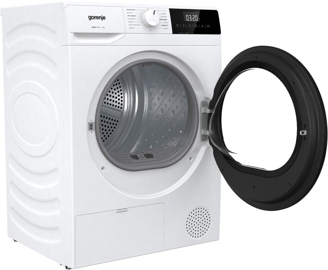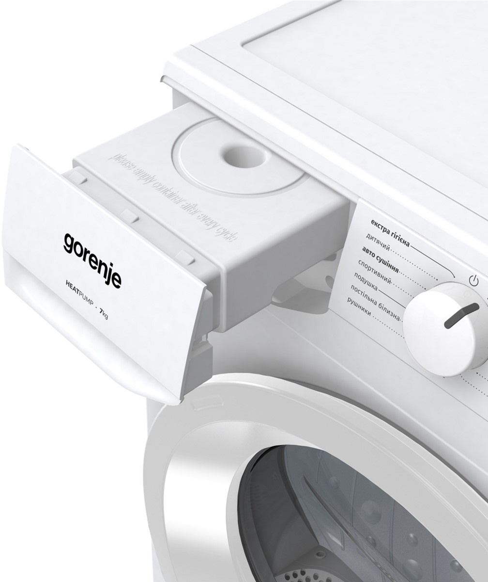 Модель Gorenje G200 D2HNE7E/UA відрізняється тихою роботою (64 дБ), має ергономічний білий корпус і зручний кут відкриття дверцят 135°. Система AutoDrain дозволяє підключити машину безпосередньо до каналізації, усуваючи потребу вручну зливати воду з конденсатного резервуара. Це сучасне, практичне рішення для дому, яке поєднує функціональність, економічність і турботу про якість вашого одягу.