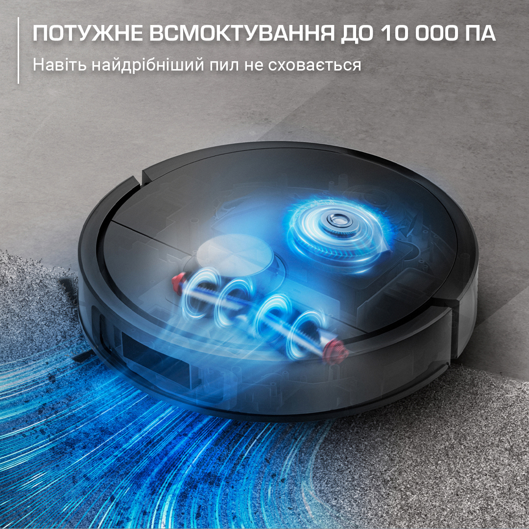 Потужність всмоктування до 10 000 Па забезпечує надглибоке очищення — пил і бруд легко видаляються з будь-яких типів поверхонь.