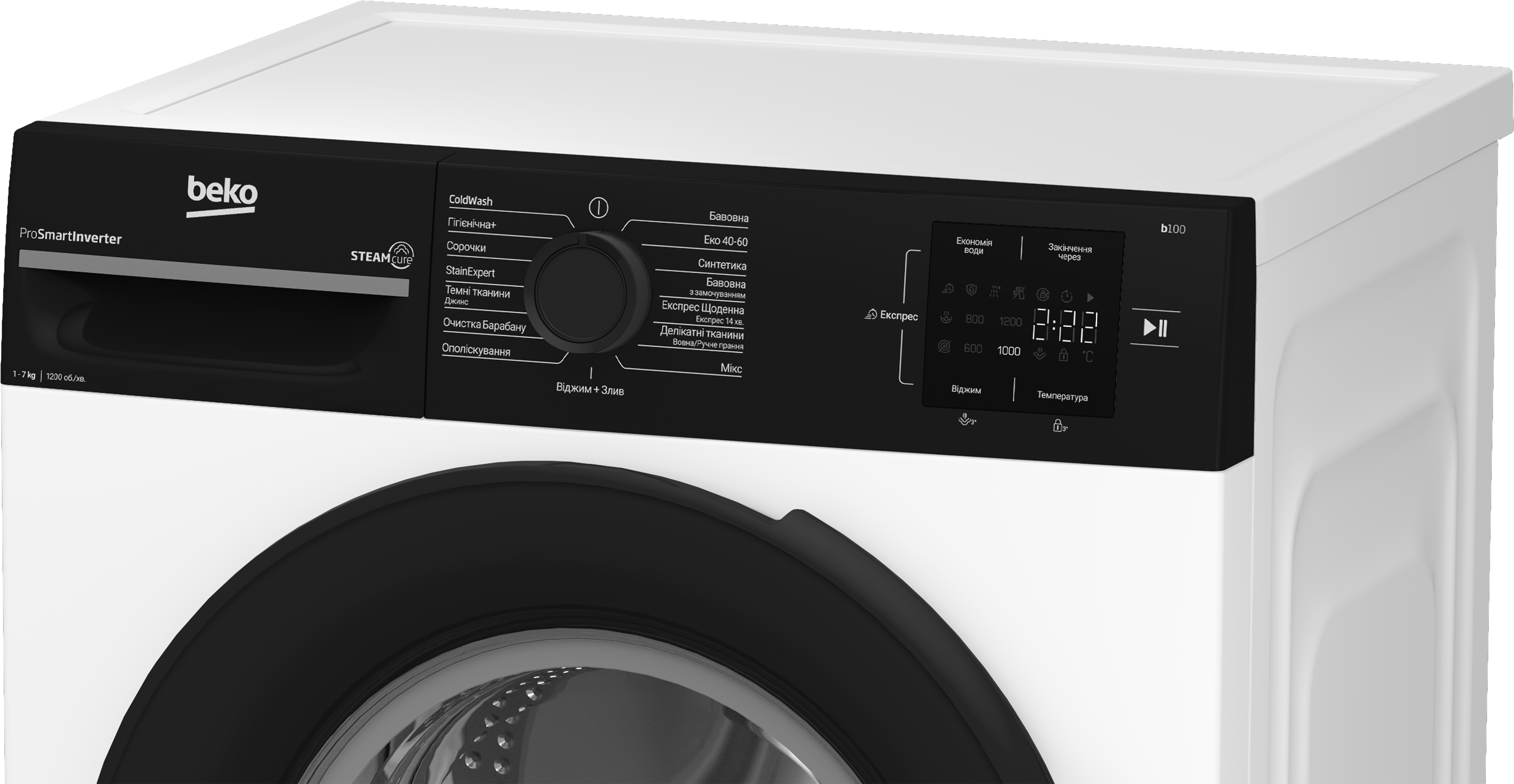 Яскравий та чіткий сенсорний екран дозволяє легко контролювати всі налаштування пральної машини, стежити за часом до завершення циклу і швидко обирати програми. На відміну від механічних кнопок, сенсорне управління не пропускає пил і вологу, що робить його більш надійним. До того ж дисплей виглядає сучасно, а інтуїтивно зрозуміле управління робить використання максимально комфортним.