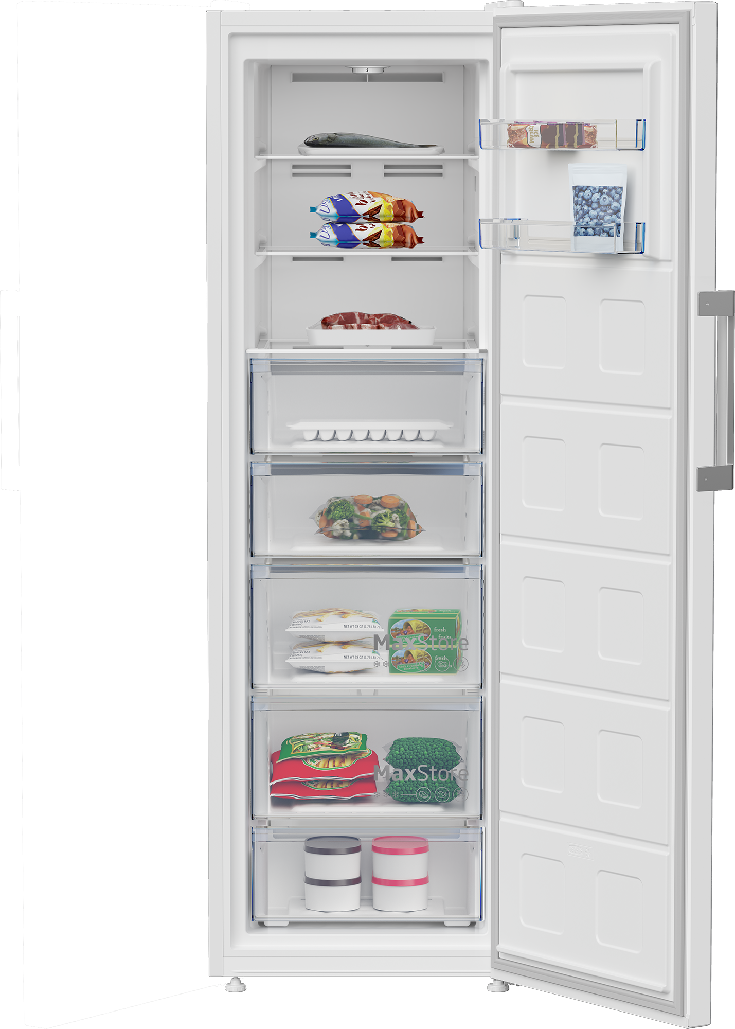 Деякі кухні сплановано так, що на них немає вільного місця або побутова техніка розташована в незручних місцях. Дверцята SmoothFit™ не виступають за межі бічної панелі, коли відчинені на 90 градусів, завдяки чому холодильник можна легко поставити в кутку або біля стіни, не жертвуючи зручністю. Контейнери для фруктів і овочів при цьому висуваються повністю.