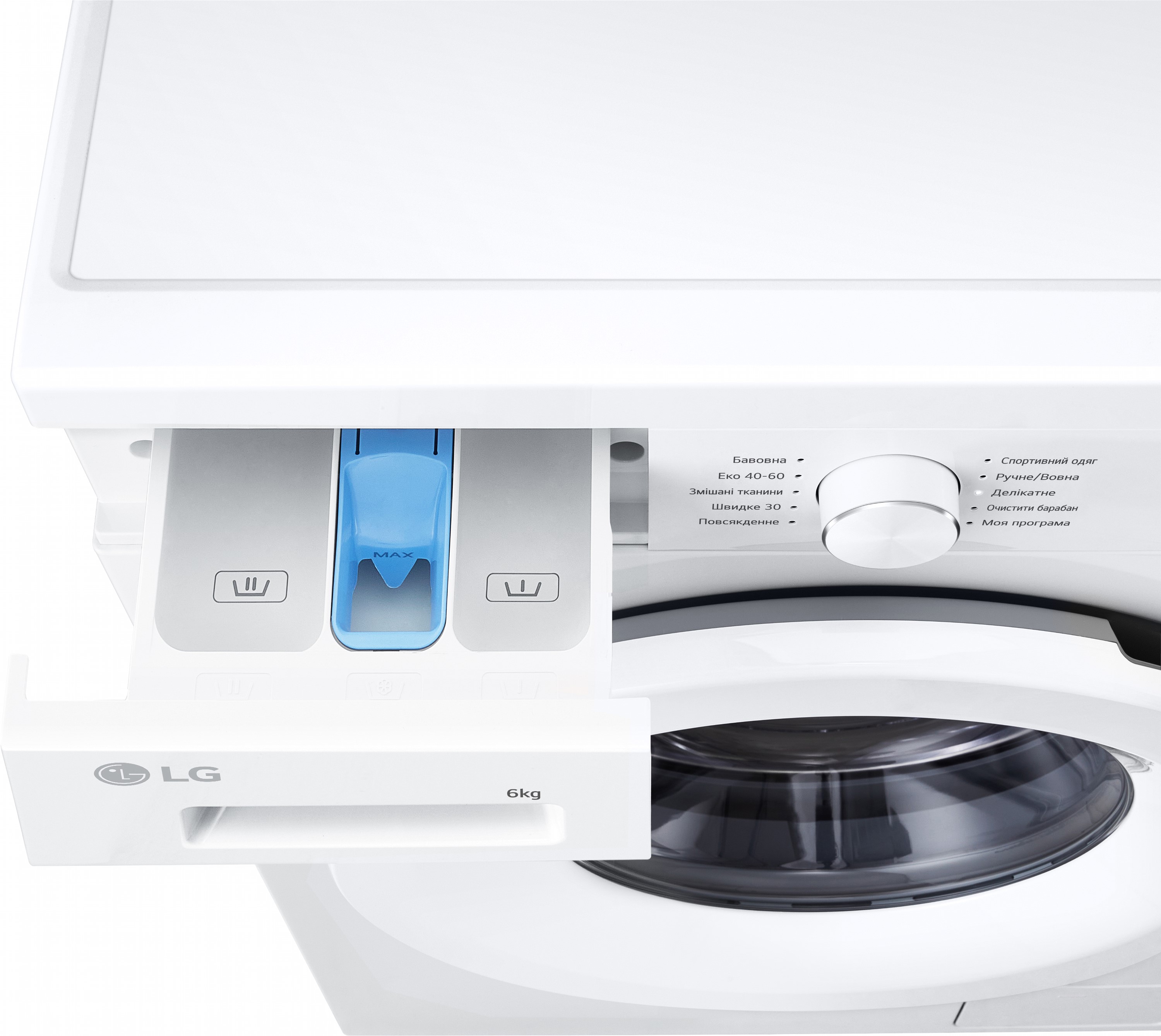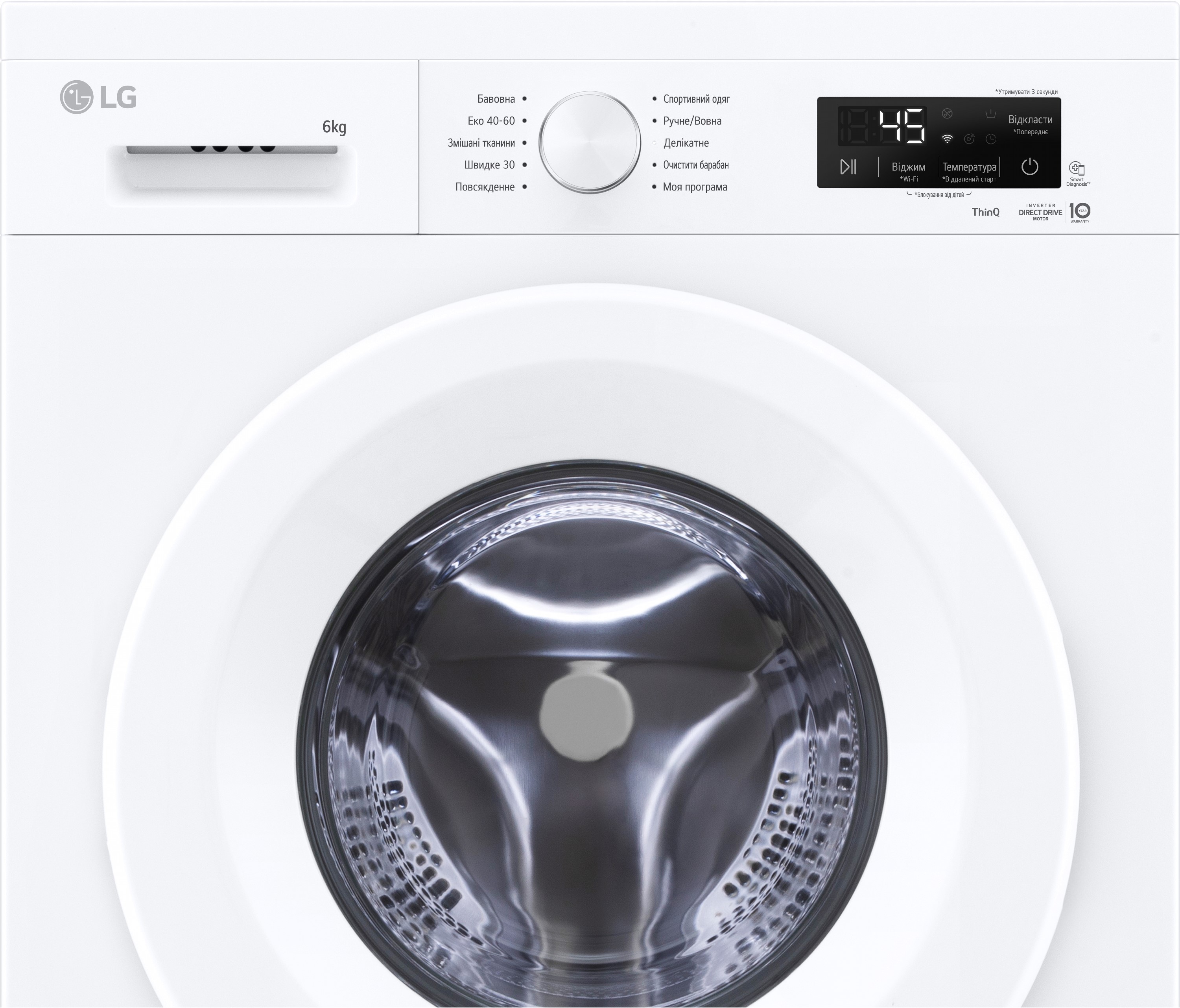 Пральна машина LG поєднує інноваційні технології, високу енергоефективність і зручне керування, забезпечуючи надійний результат прання щодня.
