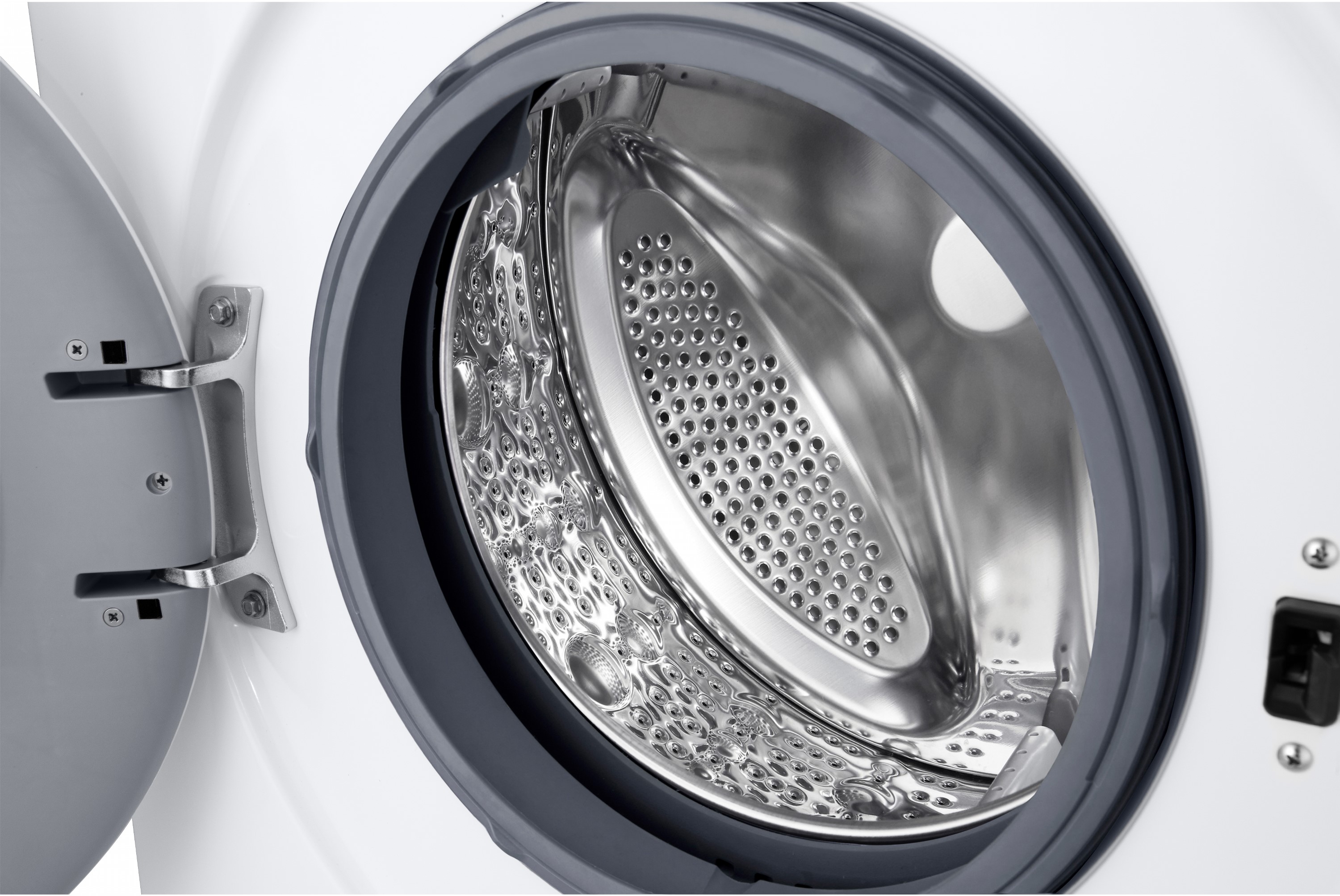 Завантажувальний люк діаметром 30 см із кутом відкриття 150° забезпечує зручне завантаження білизни. Бак виготовлений із надміцного ABS-пластику, а розбірна конструкція барабана спрощує обслуговування.
