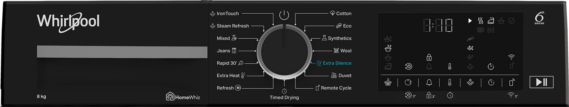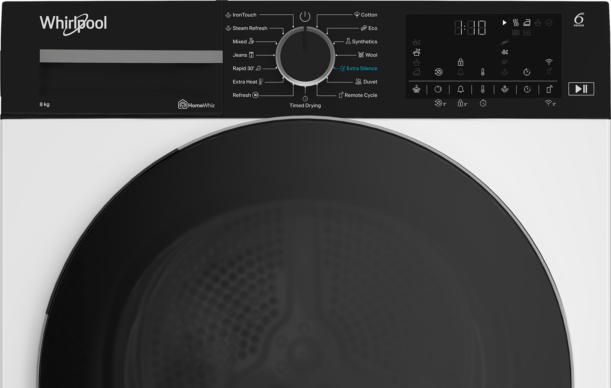 Завдяки фірмовій технології 6th Sense, сушильна машина автоматично визначає рівень вологості білизни та підбирає оптимальні параметри, забезпечуючи дбайливий догляд за тканинами, комфорт у користуванні та максимальну ефективність сушіння.