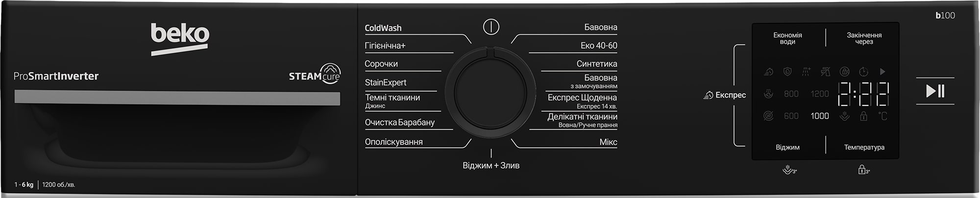 - SteamCure — парова обробка білизни перед або після прання для пом’якшення забруднень і зменшення зминання тканин