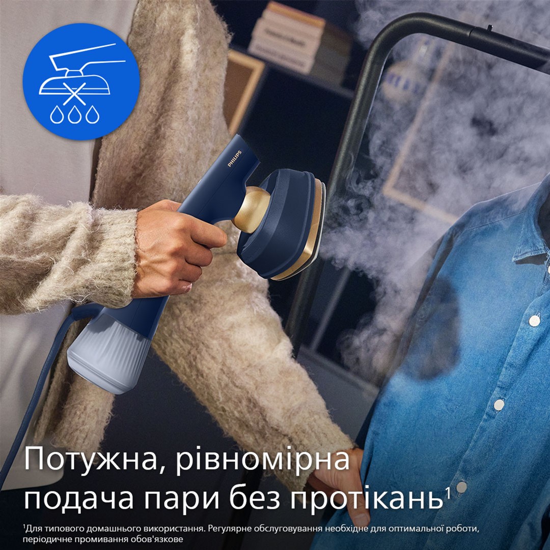 Відчуйте потужність прасування без громіздкості традиційної праски. Наша інноваційна технологія забезпечує потужну, рівномірну подачу пари без протікань* для бездоганних результатів на будь-яких тканинах — від делікатного шовку до щільної бавовни.