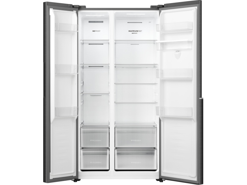 Бренд - Gorenje;Кліматичний клас - N, SN, ST, Т;Колір корпусу - Чорний;Додатково - LED освітлення, Диспенсер для води, Дисплей;Функції/можливості - Швидка заморозка, Динамічне охолодження, Суперохолодження; морозильної камери - No Frost; Автономне збереження холоду - 6 рік; Об'єм холодильної камери - Від 301 до 350 л; Висота, см - 178.6; Розморожування холодильної камери - No Frost; 301 кВт до 400 кВт; Загальний об'єм - 541 л; Тип холодильника - Side-by-side; Об'єм морозильної камери - 197 л; Глибина - Від 57 до 65 см; Тип ручок - Приховані; Інверторний;Рівень шуму - 39 дБ;Глибина, см - 61.5;Клас енергоспоживання - E;Управління - Сенсорне зовнішнє;Потужність заморожування - 9 кг/добу;Ширина, см - 91.1;
