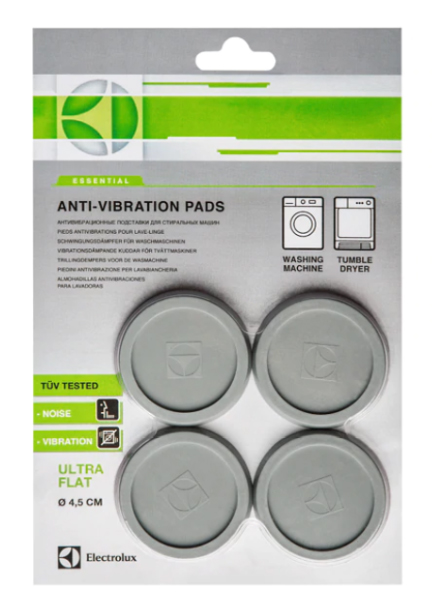 Універсальний і практичний засіб для обмеження шуму та вібрацій пральної машини та сушильного барабана. Ультраплоскі прокладки забезпечать стійкість встановленої побутової техніки та захистять ваші підлоги від подряпин. Завдяки нейтральному кольору і новій ультратонкій конструкції вони практично непомітні. Проведені випробування інститутом TÜV.
